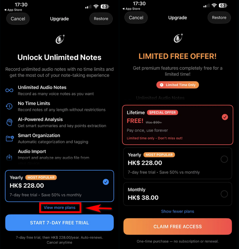Hiện tại, NoteSpeak đang miễn phí trọn đời (Lifetime) với giá gốc $69.99 trên App Store trong thời gian rất ngắn.